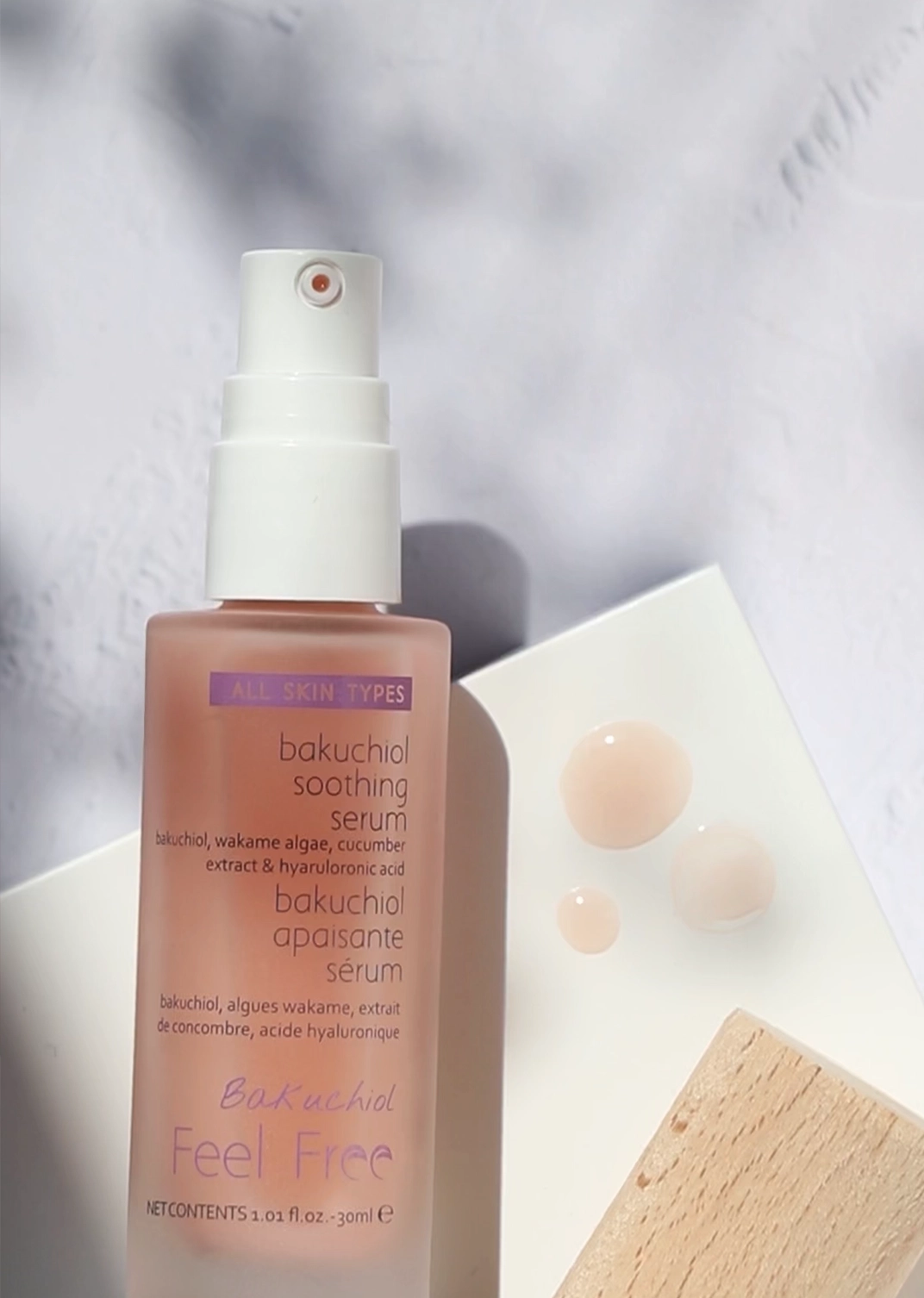 Feel Free Bakuchiol es una línea de cosméticos creada para combatir los primeros signos de envejecimiento y mejorar la textura de la piel. Esta colección combina activos como el bakuchiol, un fitoretinol de origen vegetal, y el extracto de wakame, ofreciendo propiedades antioxidantes, reafirmantes y unificadoras del tono. Gracias a estos ingredientes, la línea logra reducir arrugas, homogeneizar el tono de la piel y promover una hidratación profunda para un rostro más radiante y revitalizado.